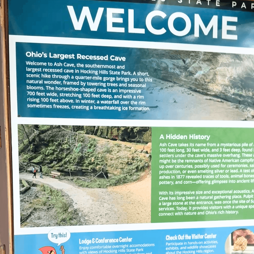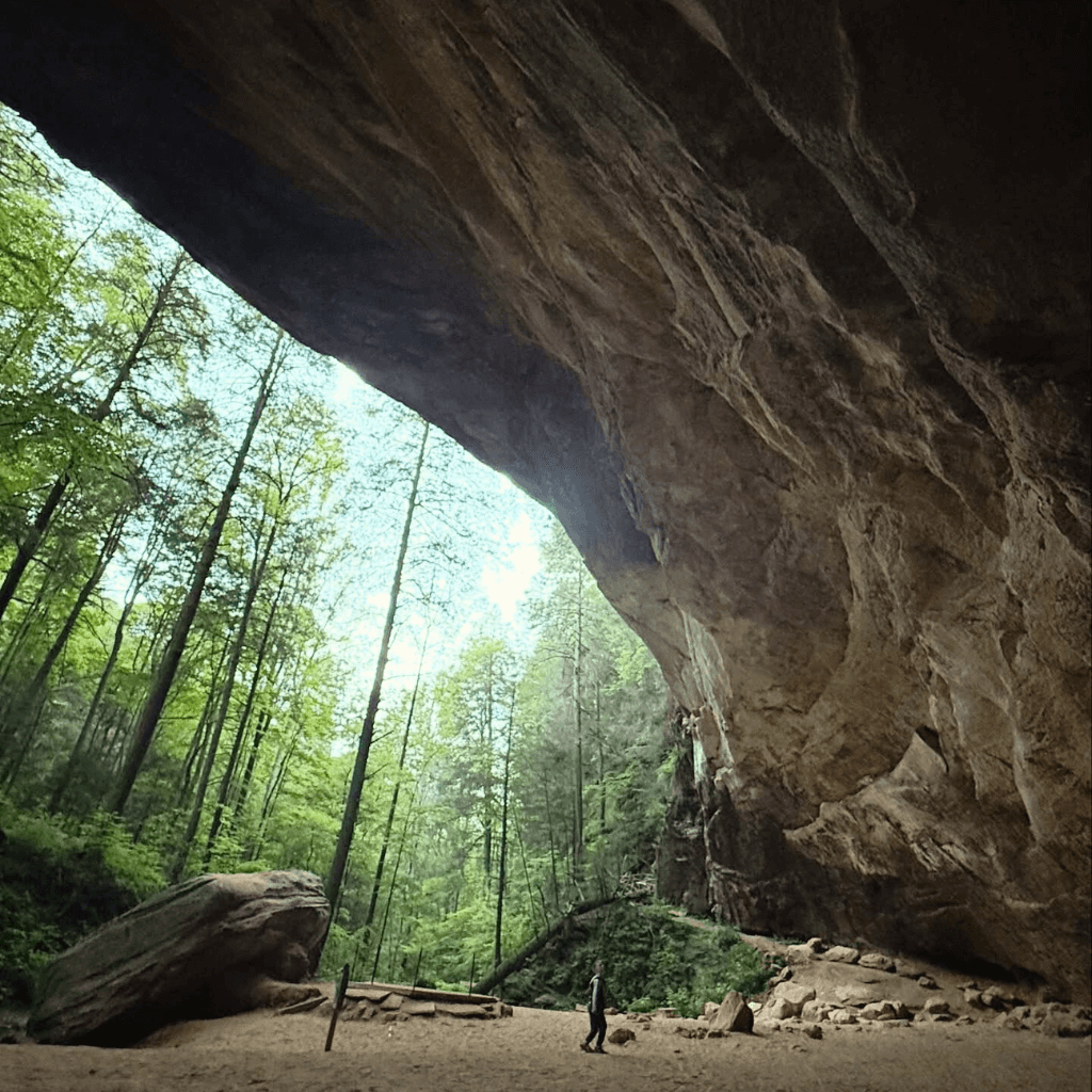 The largest recess cave in Ohio, measuring 700 feet wide, 100 feet deep, and 90 feet high. Its vast, horseshoe-shaped overhang is awe-inspiring.